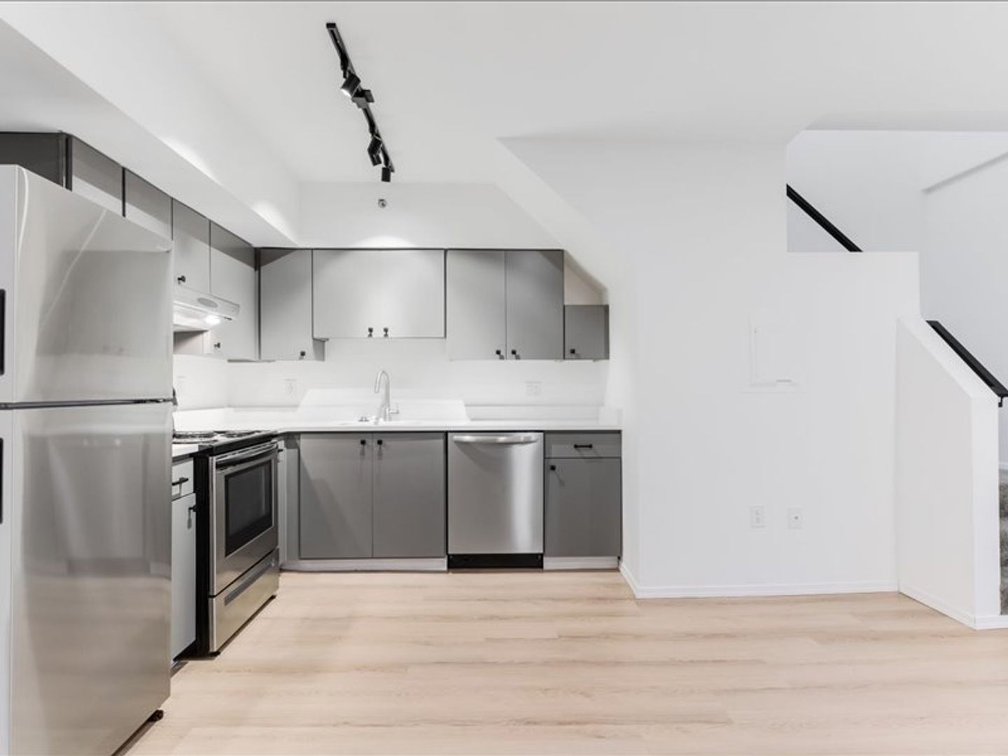A must see two level, top floor apartment! The lower level boasts an L-shape open kitchen with new cabinets and appliances and living room space with wood laminate flooring. Upstairs bedroom is carpeted and cozy, with an A/C unit provided.